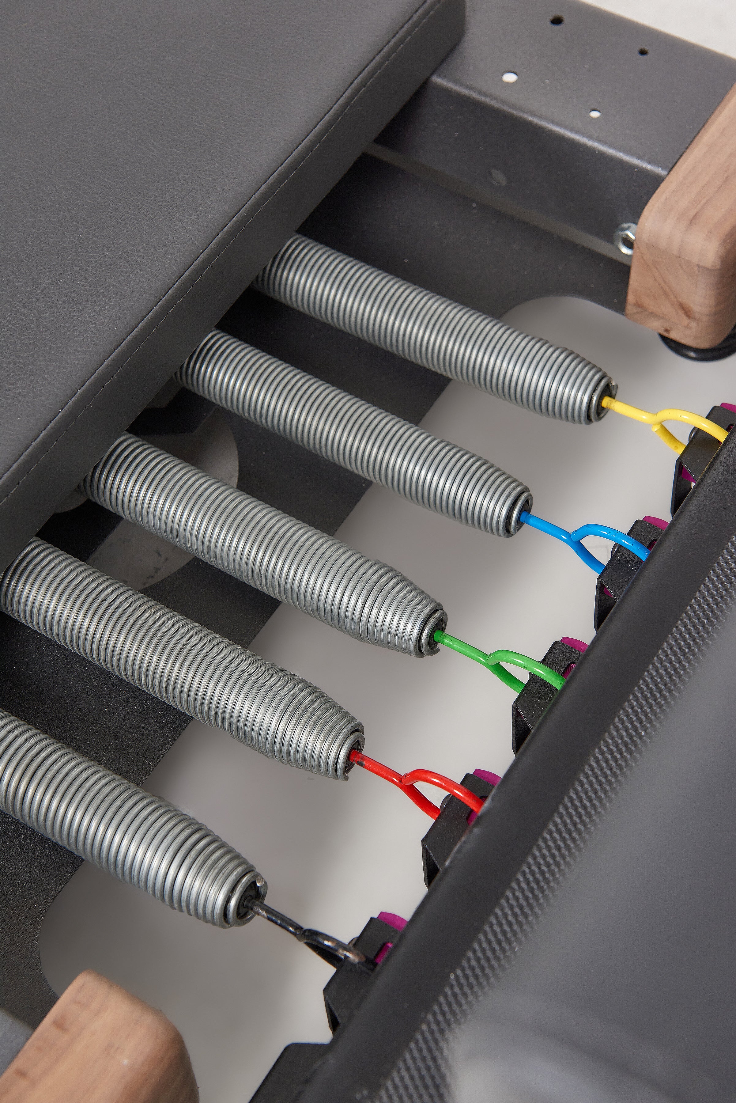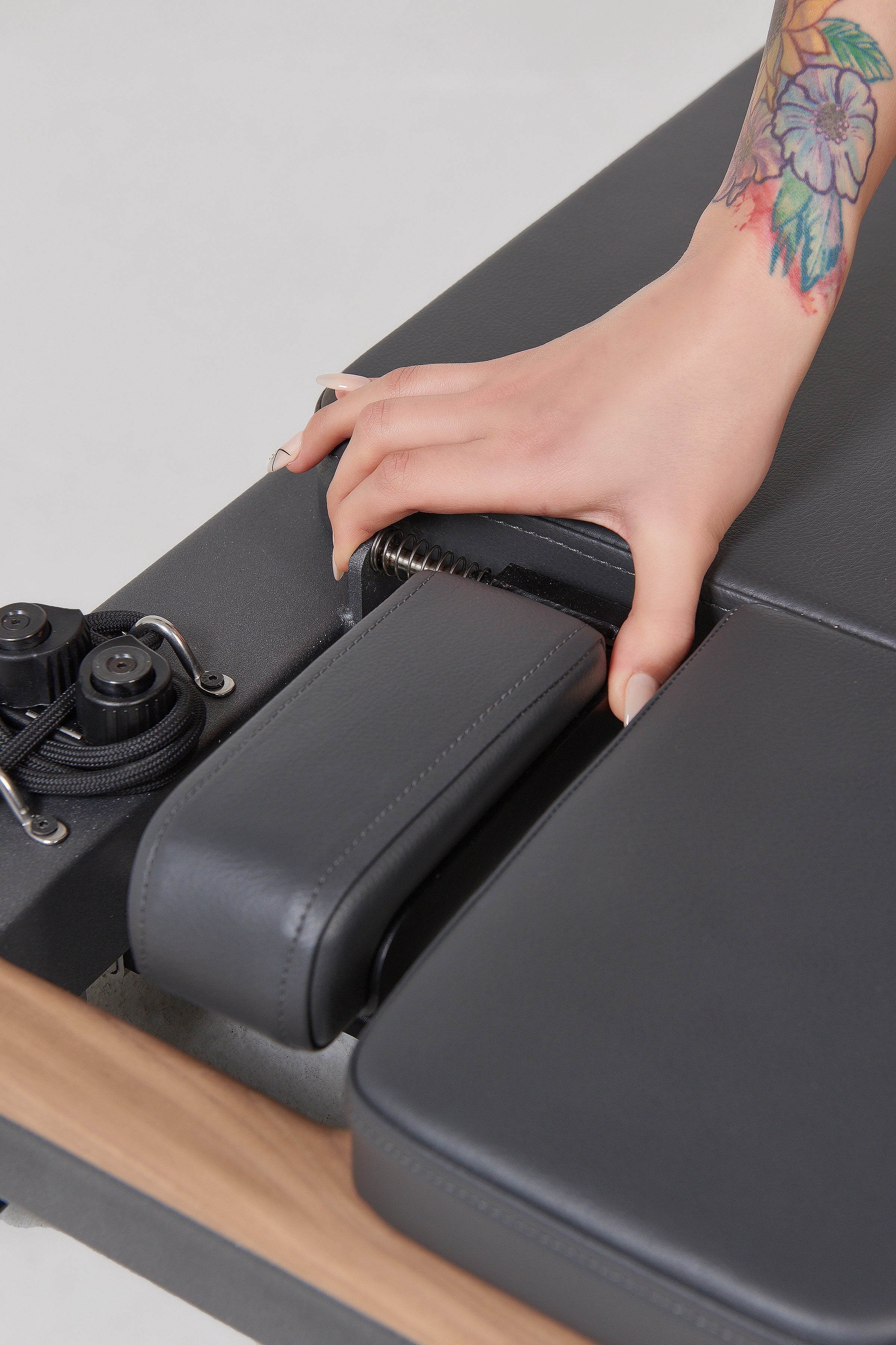 Patentli Ön Yüklemeli ve Süspansiyonlu Eklem Mekanizması, AB Crunch Bar, Hareketlı Omuzluk Mekanizması, Hafif ve Zarif Çerçevesi ile Türkiye'nin en kaliteli katlanabilir reformer pilates aletidir.